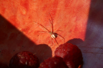 Very pretty spider that got caught in a bowl during raspberry picking.
