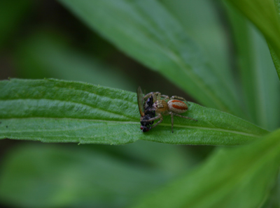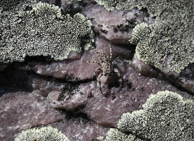 A fast black spider (one of many) that kept darting in and out among the rocks on the beach in Egg Harbor, Wisconsin.