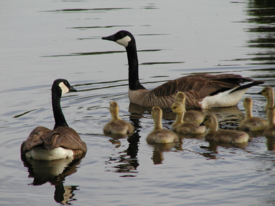 A goose family in the water at Edna Taylor Conservation Park in Madison, Wisconsin.