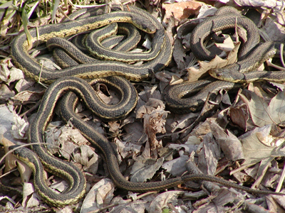 A nest of garter snakes along a path at Lake Farm County Park, Dane County, Wisconsin