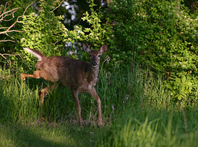 This deer popped out from behind some trees at Lake Farm County Park near Madison, Wisconsin.
