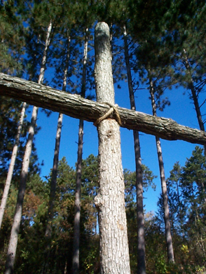 Outside of the village is a place called the Chapel in the Pines. There is a small chapel there, various memorials, a stage, and items like this cross and a Nativity scene scattered among the pines.