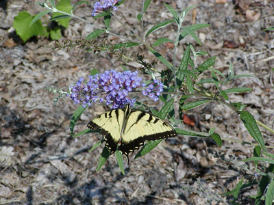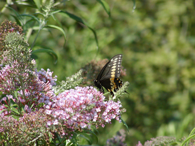 An Eastern Swallowtail butterfly on flowers at Olbrich Botanical Gardens, Madison, Wisconsin.