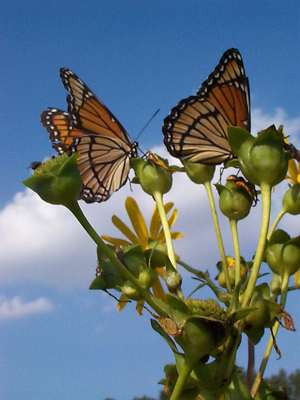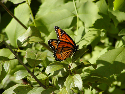 A free-flying butterfly in the flower gardens at Olbrich Botanical Gardens, Madison, Wisconsin.