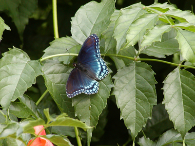 The beautiful red-spotted purple butterfly, seen in a small park in Fountain City, Wisconsin, a Mississippi River town.